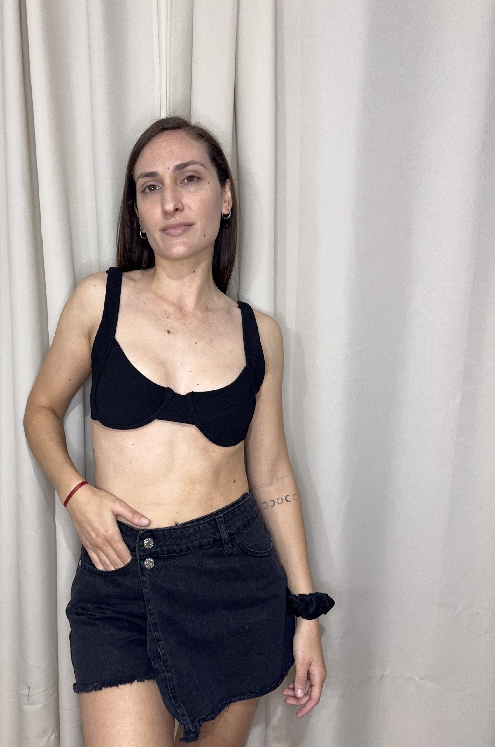 Está pensado para hacer en telas con buena elasticidad (el molde tiene una reducción de 20% en anchos y 10% en alto). Lo confeccioné en mini morley con lycra, que al ser más liviana que un tricot queda mucho mejor en modelos de bikini con arco (dato de color) ✅