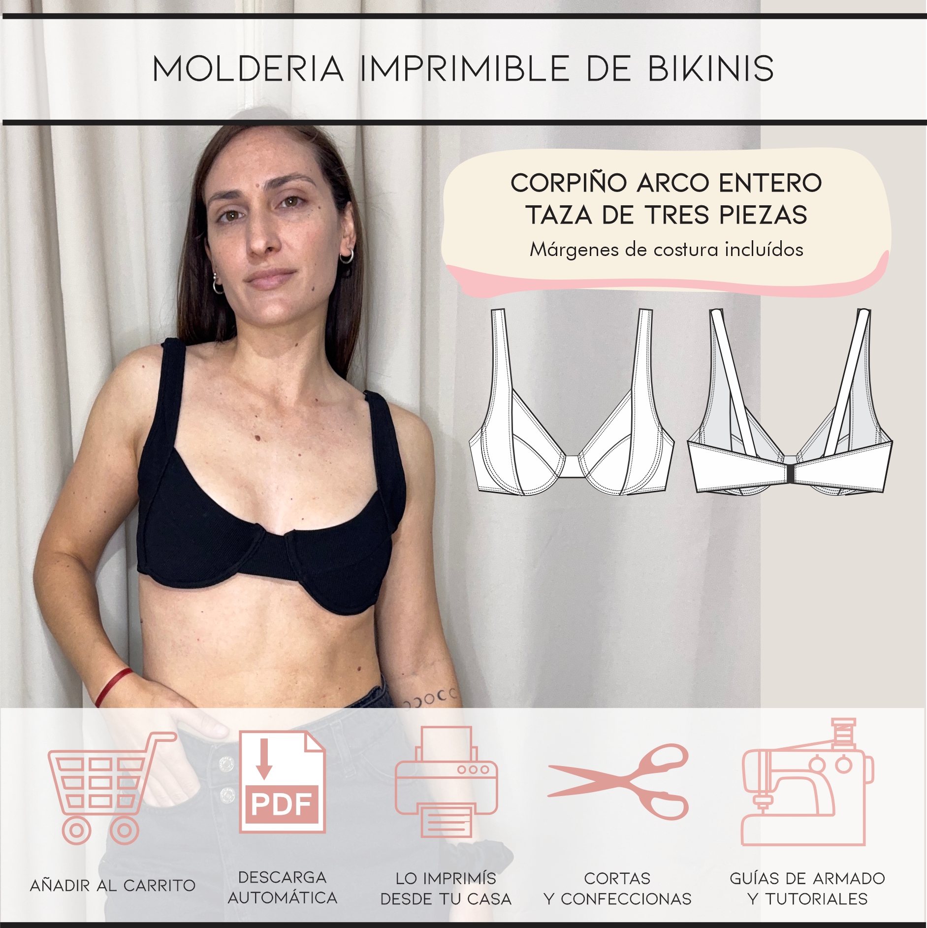 ✂️Incluye video tutorial de confección del corpiño que podrás ver una vez que accedas al contenido de los moldes dentro de “cursos”