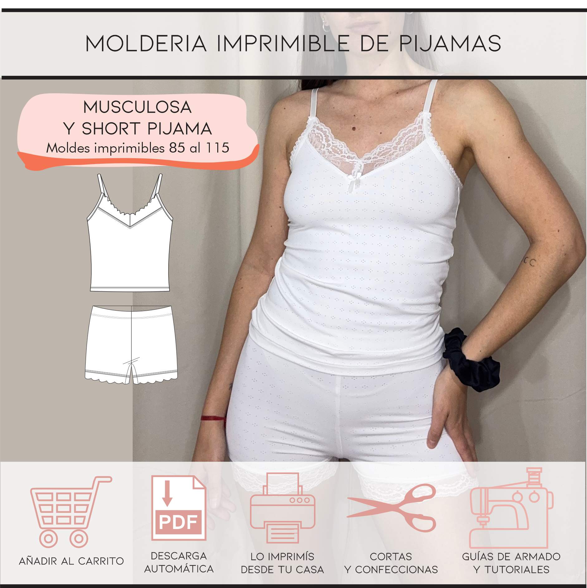 ✨Los moldes imprimibles de este modelo YA INCLUYEN LOS MÁRGENES DE COSTURA AÑADIDOS en toda la curva de talles✅ 0.5 cm para las uniones, 2 cm para elástico embutido en cintura de short y sin margen donde lleva la punta de onda de la puntilla
